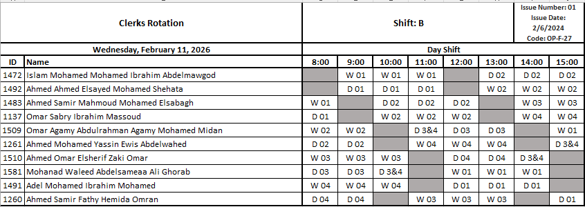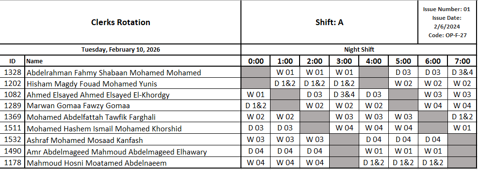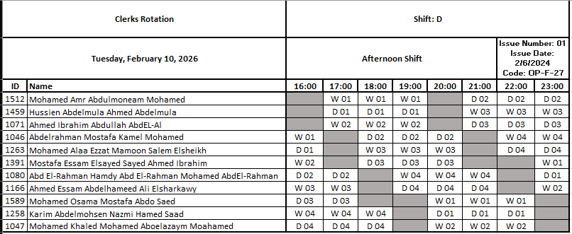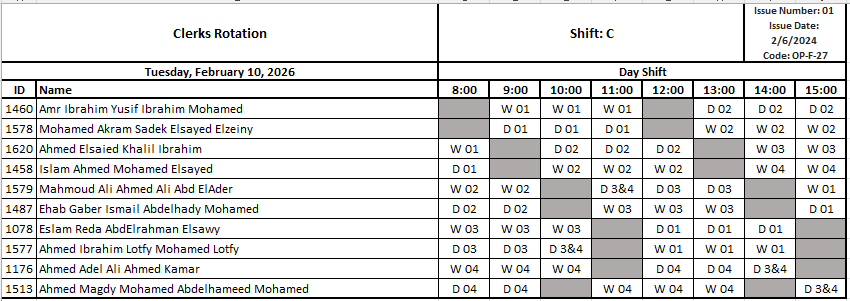 Clerks Rotation by ahmed magdy | Mar 28, 2024 | OPS, Rotation Rotation Shift C Day☀️C الوردية الصباحية شيفت Rotation Shift D Afternoon🌅D الوردية المسائية شيفت Rotation Shift A Night🌚A الوردية الليلية شيفت
